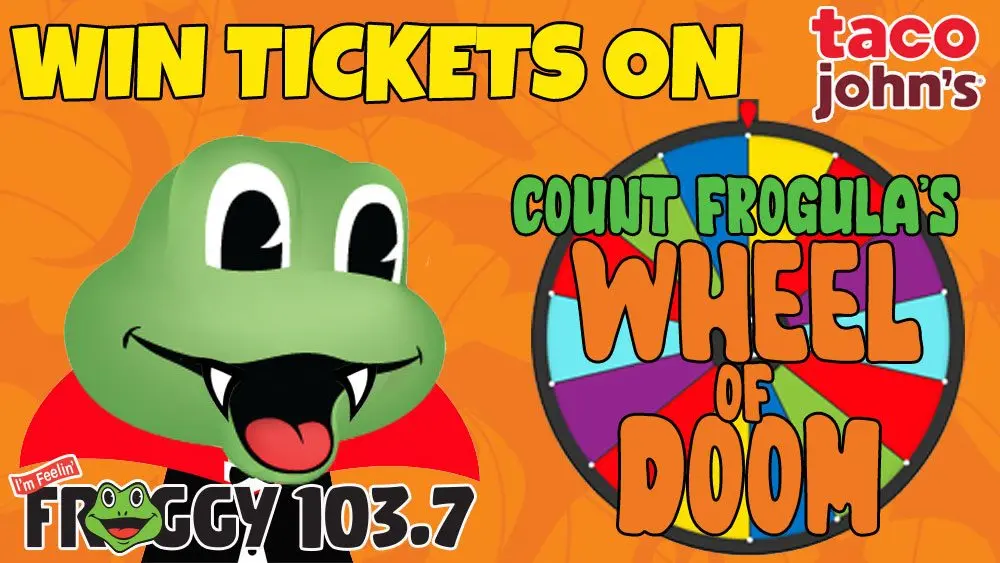 We’ll be at Taco John’s in Murray this Friday from 11 am-1 pm with your ONLY CHANCE to spin Count Frogula’s Wheel of Doom in person! It’s your last opportunity this spooky season to win tickets to haunted attractions like Talon Falls, The Industrial Slaughterhouse, and Six Flags Fright Fest in St Louis!